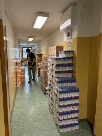 Produkty spożywcze w ilości ok. 16 ton zostały przywiezione i złożone w wyznaczonym do tego pomieszczeniu w formie paczek żywnościowych, które wydawane były przez pracowników socjalnych w siedzibie Szkoły Podstawowej w Rajsku, w magazynie przy
