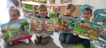 W październiku w ramach projektu „Poznaję, eksperymentuję, tworzę – podnoszenie jakości edukacji przedszkolnej w Przedszkolu Samorządowym w Brzezince” w module "Jestem świadomym obywatelem" realizowano następujece treści: znam pojecia obywatel, prawa obywatelskie, władza lokalna, znam swoje prawa i obowiązki, szanuję tradycje - skąd sę bierze chleb. Przedszkolaki zostały zapoznane z herbem Brzezinki, dowiedziały się, kto sprawuje władzę w naszej gminie, przypomniały symbole narodowe, oglądały zdjęcia z różnych miast Polski, poznały prawa i obowiązki dzieci, ponadto opowiadały historyjkę "Od ziarenka do bochenka".