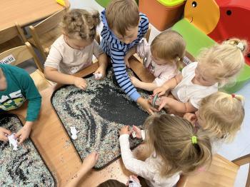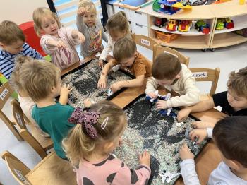 Podczas zajęć dzieci rozwijały koordynację wzrokowo-ruchową, małą motorykę oraz wyobraźnię przestrzenną, a jednocześnie doświadczały, jak wiele radości daje nauka poprzez zmysły.
