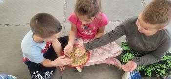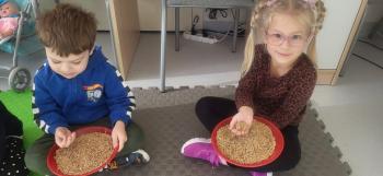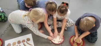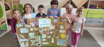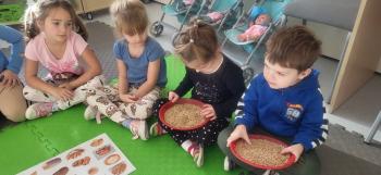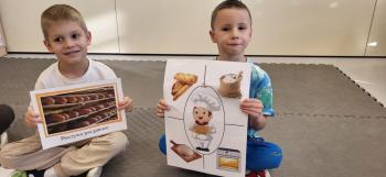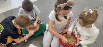 W ramach projektu „Poznaję, eksperymentuję, tworzę – podnoszenie jakości edukacji przedszkolnej w Przedszkolu Samorządowym w Brzezince” w module "Jestem śwaidomym obywatelem" w listopadzie i grudniu zrealizowano następujące tematy: szanuję tradycje, uczę się piec chleb, wytwarzać masło i twaróg, zalezności w świecie przyrody. Przedszkolaki poznały historyjkę "Od ziarenka do bochenka", dowiedziały się skąd się bierze mleko, jak wyrabiany jest twaróg i masło, poznały różne rodzaje pieczywa oraz produktów mlecznych, odszukiwały w piramidzie żywieniowej miejsce tych produktów. Ponadto dzieci zostały zapoznane z pojęciem przyroda, ekosystem, wzbogaciły wiadomości na temat ptaków.