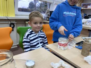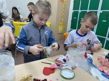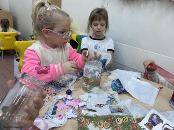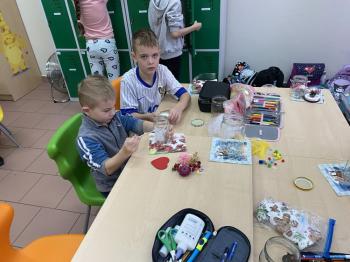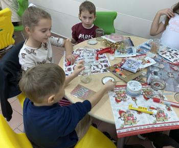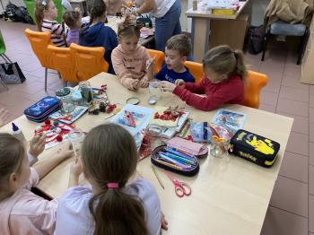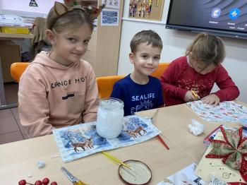 Grupa „Jeżyki” udała się na warsztaty do swoich starszych kolegów ze Szkoły Podstawowej w Brzezince. Wspólnie z ich pomocą dzieci wykonały lampiony z serwetek oraz różnych materiałów przyniesionych z domu. Każdy lampion był wyjątkowy i niepowtarzalny. Podczas spotkania dzieci zintegrowały się z kolegami i koleżankami, a także miały okazję zobaczyć szkołę i poznać jej wnętrze.