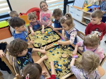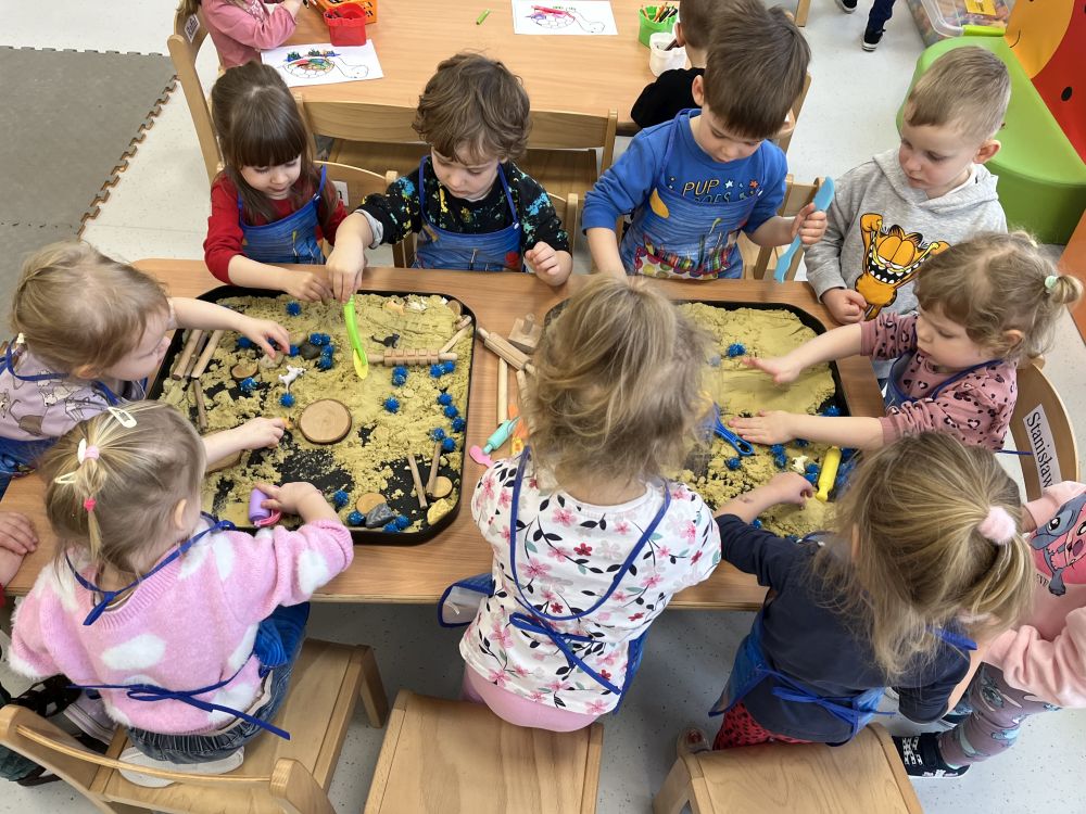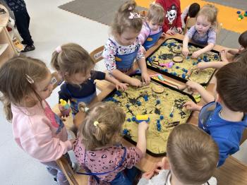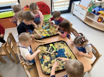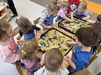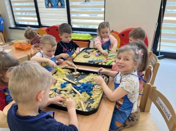 17 lutego w grupie Biedronek świętowaliśmy wyjątkowy dzień – Światowy Dzień Kota. Tego dnia do naszej sali zawitały urocze kotki, a dokładniej ich figurki, którymi dzieci mogły się zaopiekować niczym prawdziwymi pupilami. Podczas zajęć sensorycznych stworzyliśmy dla naszych małych przyjaciół przytulny, bezpieczny kącik z piasku kinetycznego. Dzieci z ogromnym zaangażowaniem ugniatały, przesypywały i formowały piasek, rozwijając przy tym sprawność dłoni oraz koordynację wzrokowo–ruchową. Powstawały miękkie legowiska, małe domki, a nawet „kocie ogródki”. Każde dziecko mogło wykazać się kreatywnością i troską, dbając o komfort swojego kotka. Nie zabrakło również elementów zabawy ruchowej i stymulacji sensorycznej. Wykorzystaliśmy miękkie, kolorowe pomponiki, które – jak wiadomo – koty uwielbiają! Podczas wspólnych aktywności rozmawialiśmy o tym, jak należy opiekować się zwierzętami, czego potrzebują koty oraz w jaki sposób możemy okazywać im troskę. Była to doskonała okazja do kształtowania postaw empatii i odpowiedzialności już od najmłodszych lat. Nasze Biedronki pokazały, że nawet najmniejsze rączki potrafią okazać wielką troskę i opiekuńczość. Z niecierpliwością czekamy na kolejne sensoryczne przygody!