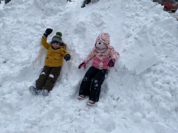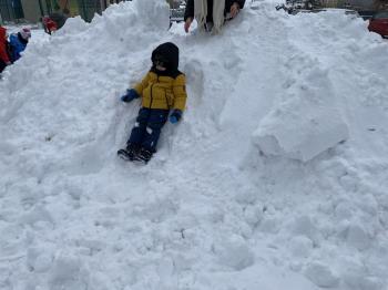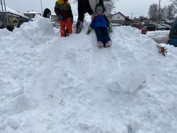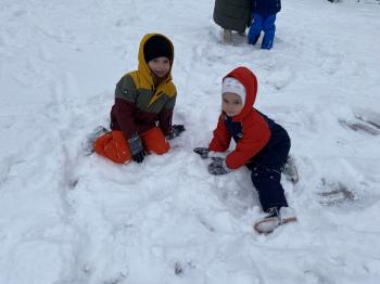 Zabawy Jeżyków na śniegu