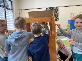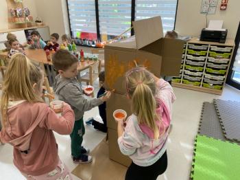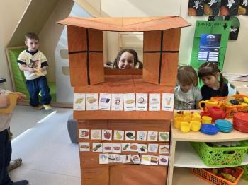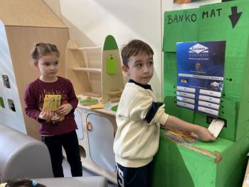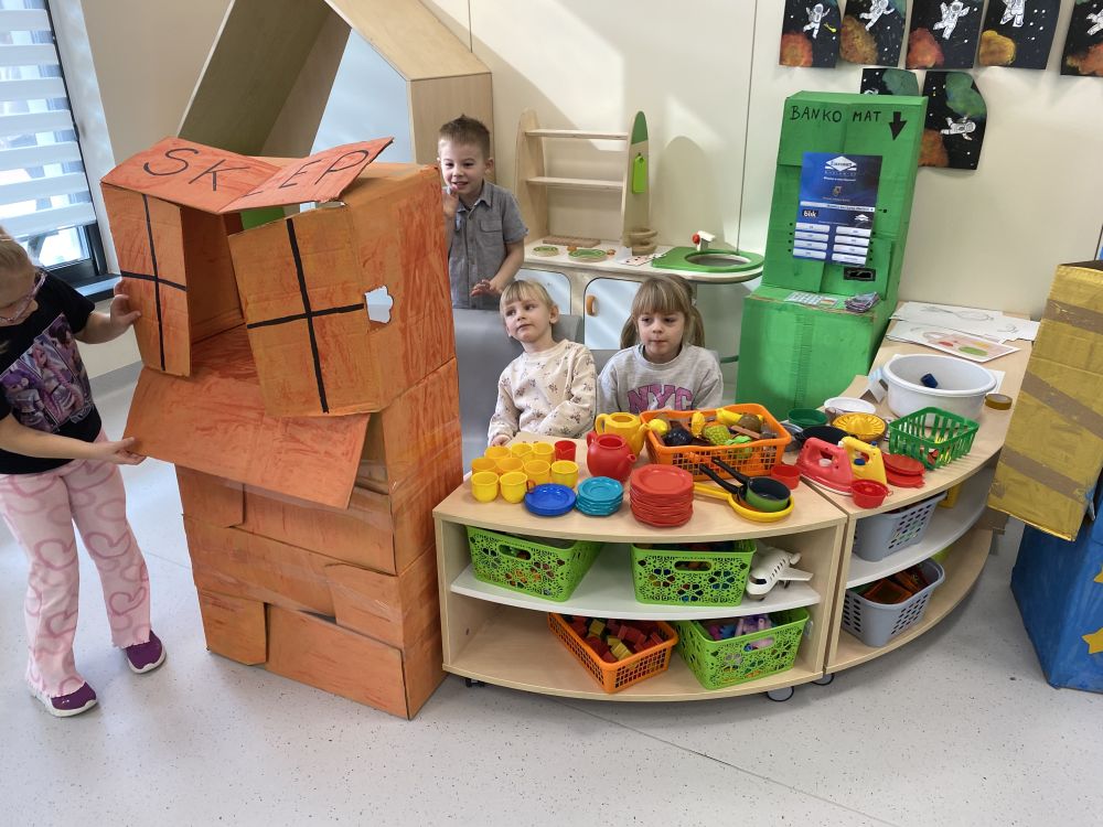 Po powrocie do sali uczestnicy wspólnie stworzyli własny sklep, w którym mogli odgrywać role sprzedawców i klientów. Dodatkowo przygotowali także bankomat, z którego „wypłacali” pieniądze potrzebne na zakupy w ich sklepie. Dzięki temu mogli ćwiczyć sytuacje związane z robieniem zakupów, liczeniem pieniędzy oraz komunikacją w sklepie świetnie się przy tym bawiąc.