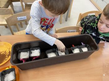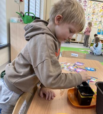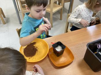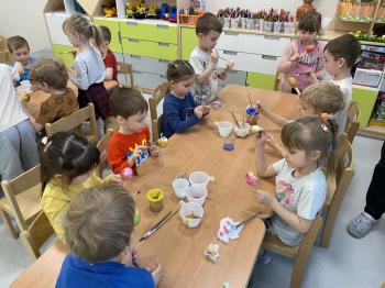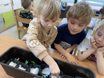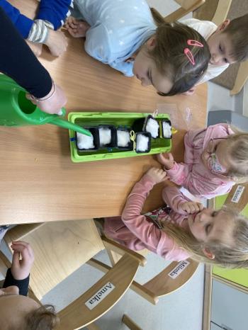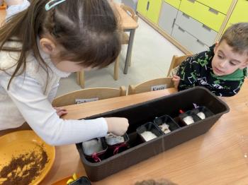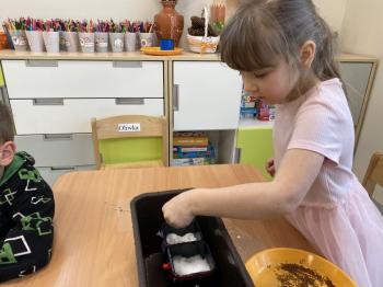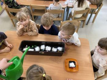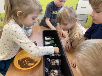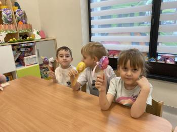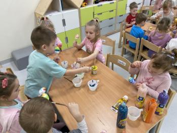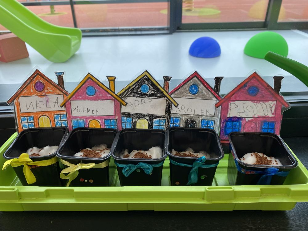 Grupa Jeżyki zasiała w sali rzeżuchę. Każde dziecko przygotowało swój własny „domek” oraz ozdobiło pojemnik według własnego pomysłu. Dzie wykonały również ozdobne pisanki ze styropianu, dekorując je wcześniej przygotowanymi materiałami.