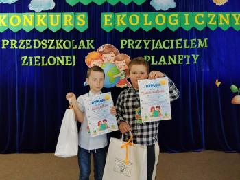 Wszyscy uczestnicy otrzymali pamiątkowe dyplomy oraz nagrody za udział w konkursie oraz nagrody dla swojej grupy przedszkolnej w postaci gry planszowej o tematyce ekologicznej.