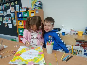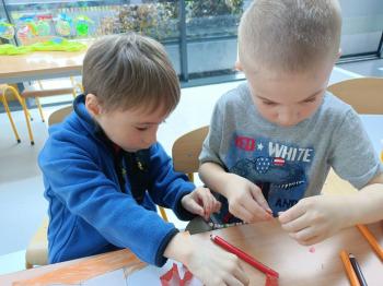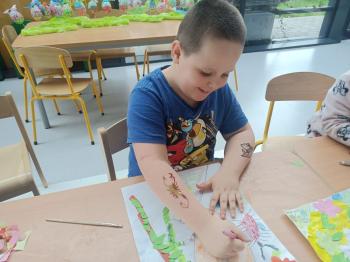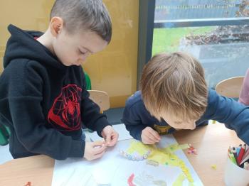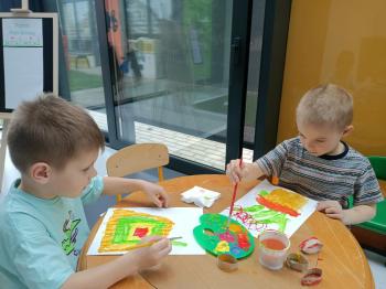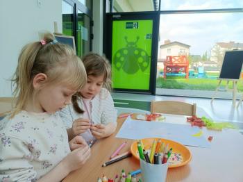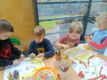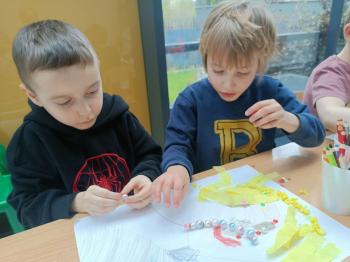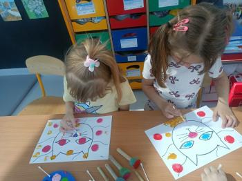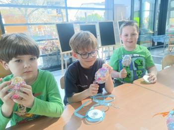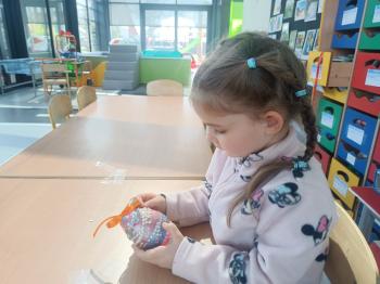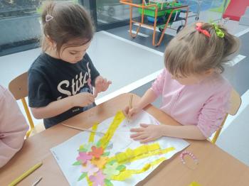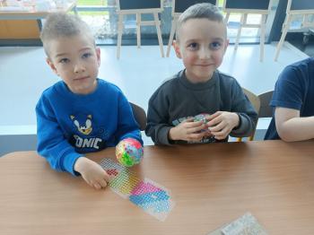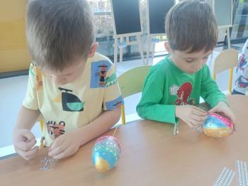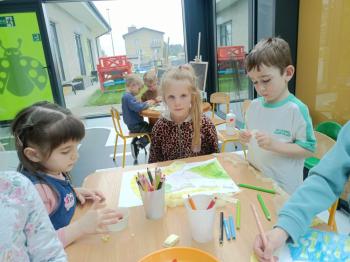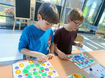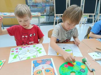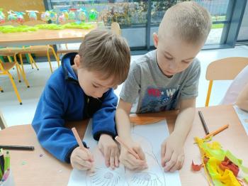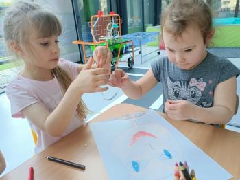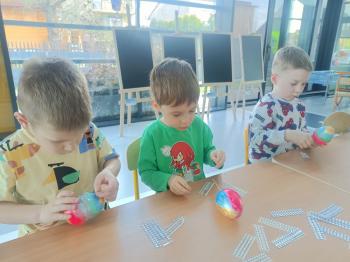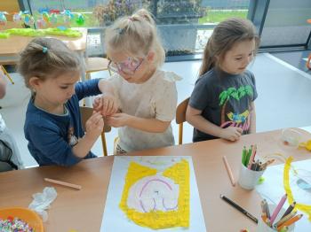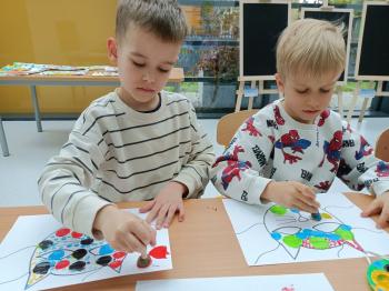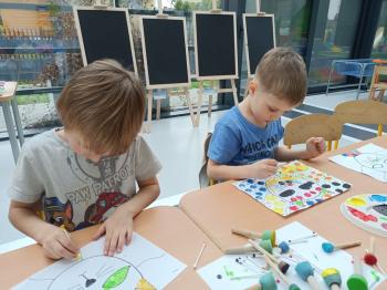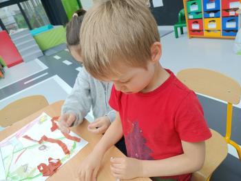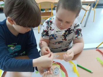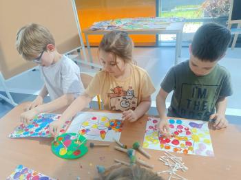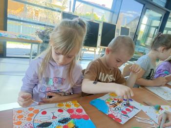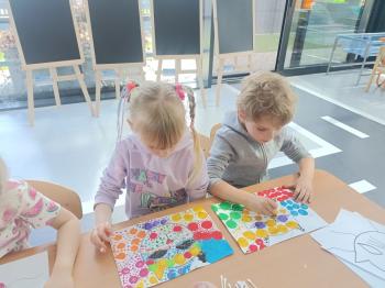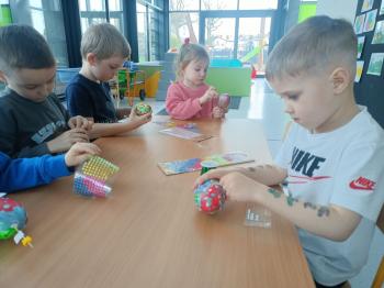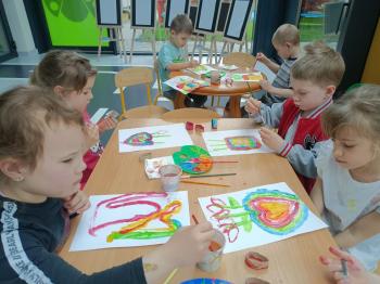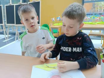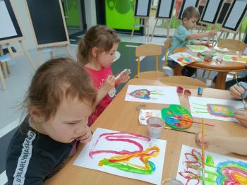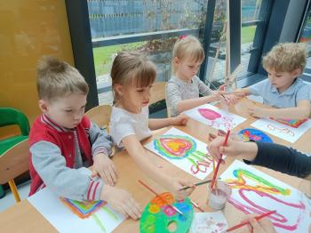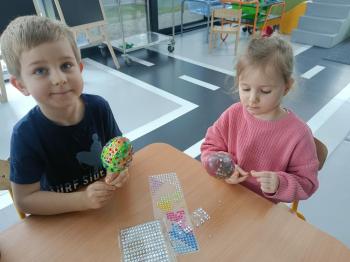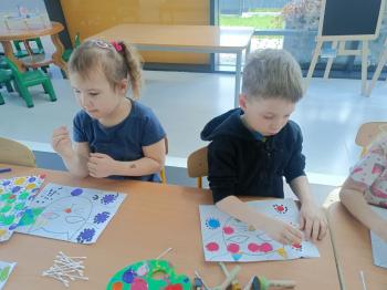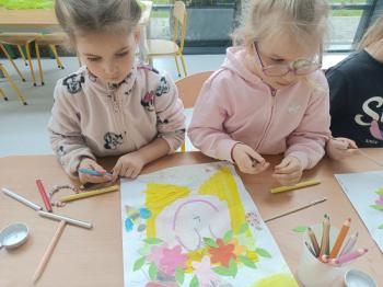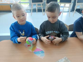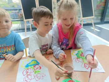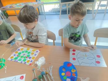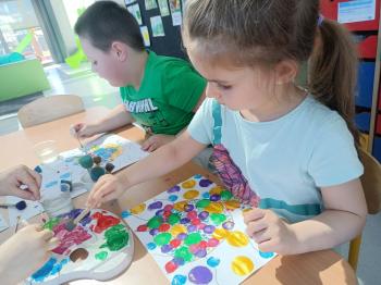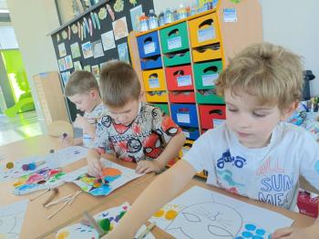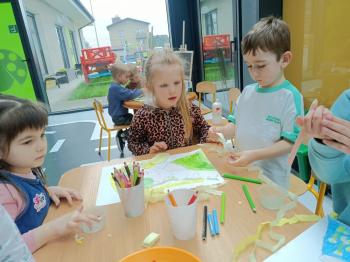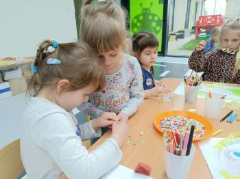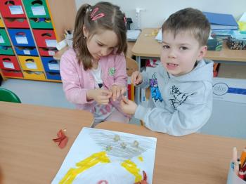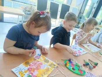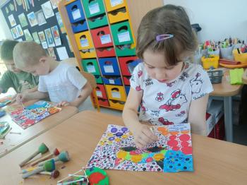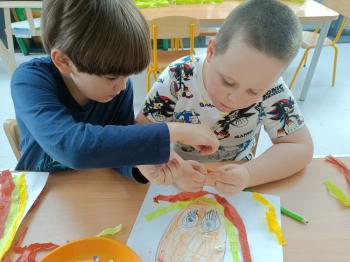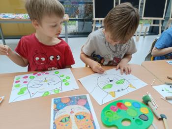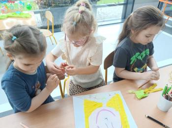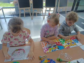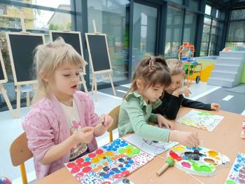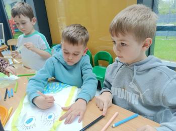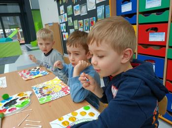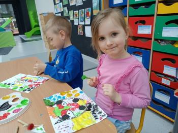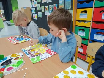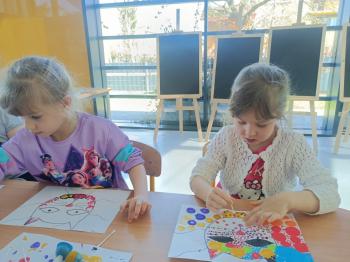 Biżuteryjne zdobienie jest niezwykle wymagającą sztuką. W tym kierunku też specjalizował się Carl Faberge. Dzięki jego unikatowym dziełom przedszkolaki oglądały reprodukcje arcydzieł oraz mogły poznać kolejne etapy biżuteryjnych zdobień i wykonać swoje unikatowe i jedyne w swoim rodzaju jajka. Była to bardzo żmudna, wymagająca dużego skupienia i pomysłowości praca. Kolejna artystyczna podróż przeniosła dzieci w świat kropek japońskiej rzeźbiarki i malarki Yayoi Kusamo. Z wykorzystaniem stempli różnej wielkości uczyliśmy się sztuki stawiania kropek łącząc ze sobą różnorodne kolory. Wraz z nadejściem wiosny przedszkolaki w praktyce doskonaliły etapy powstawania portretu.