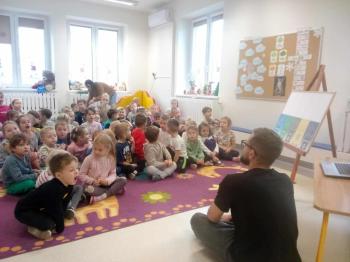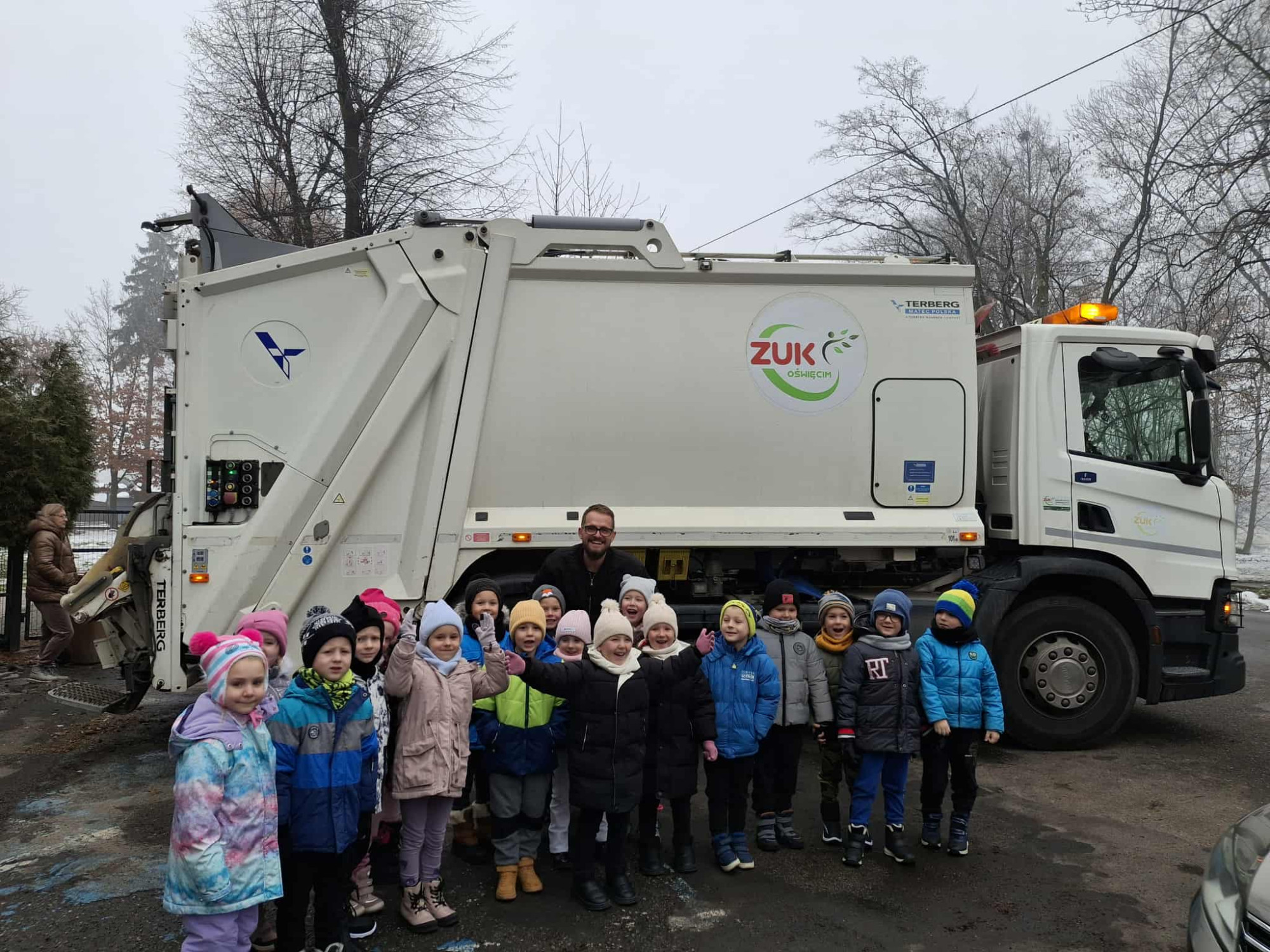 W dniu 1 grudnia w naszym przedszkolu zostały zrealizowane zajęcia, z zakresu poprawnej segregacji w formie prelekcji, prowadzonej przez pracownika Zakładu Usług Komunalnych Sp. z o.o. w Oświęcimiu. Po zakończeniu części teoretycznej, dalsza część prelekcji odbywała się na zewnątrz, a dzieci miały okazje z bliska zobaczyć i zapoznać się z działaniem śmieciarki. Chętni mieli szanse usiąść za kierownicą tego pojazdu.