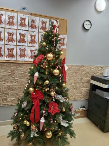 Serdecznie dziękujemy Panu z Centrum Ogrodniczego „Sajdak” za przekazanie pięknej choinki do naszego przedszkola oraz za wspólne jej ubieranie razem z dziećmi. Dzięki Pańskiej uprzejmości i zaangażowaniu mogliśmy przeżyć radosne, przedświąteczne chwile, a udekorowana choinka przepięknie zdobi nasz korytarz, wprowadzając wszystkich w świąteczny nastrój. Dziękujemy za życzliwość, czas i wsparcie naszej przedszkolnej społeczności!