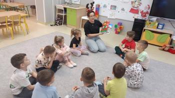 Tuż przed świętami nasze przedszkole odwiedziła bibliotekarka Pani Renata Stefańska. Tym razem spotkała się z dziećmi z grupy Tropicieli. Podczas spotkania przeczytała dzieciom świąteczną bajkę, zachęcała także do odwiedzania biblioteki wspólnie z rodzicami.