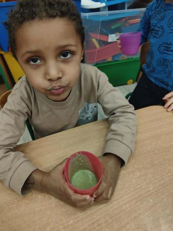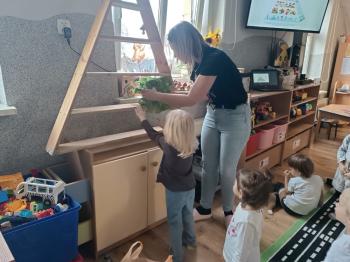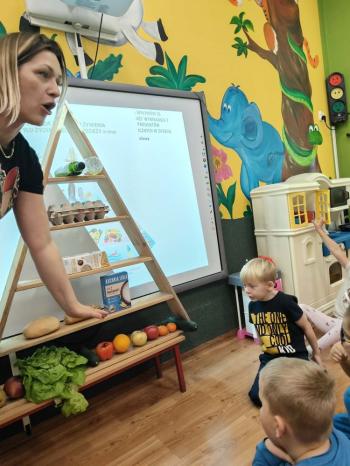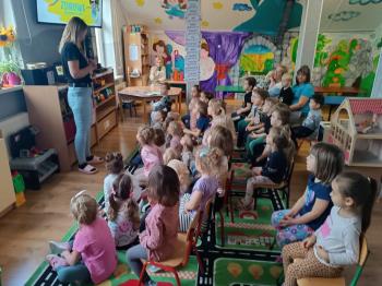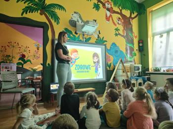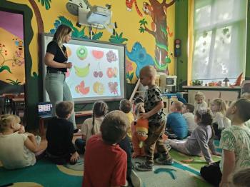 Podczas spotkania dzieci w przystępny i ciekawy sposób dowiedziały się, jak ważne jest zdrowe odżywianie, spożywanie warzyw i owoców oraz dbanie o codzienne nawyki sprzyjające dobremu samopoczuciu. Wydarzenie było wartościową lekcją, która zachęciła przedszkolaki do świadomych, zdrowych wyborów.