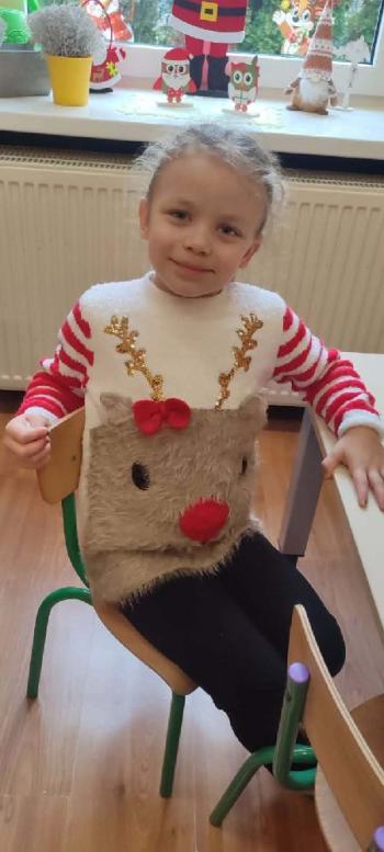 . Dzieci, oraz nauczyciele przyszli ubrani w kolorowe, świąteczne sweterki, ozdobione reniferam