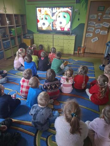 . Dzieciaki miały okazję zobaczyć na ekranie bajkę pt."Trefliki ratują święta"