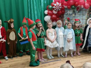W naszym przedszkolu odbyło się świąteczne przedstawienie pt. „Mikołaj i jego magiczne elfy”. Aktorzy przeniosły dzieci do fabryki Elfów, w której razem z Mikołajem, Panią Zimą i reniferami przygotowywały się do Świąt Bożego Narodzenia. Spektakl w piękny sposób pokazał, że najważniejsze są wspólnie spędzone chwile, radość i bycie razem, a nie prezenty. Przedstawienie zakończyło się radosnym tańcem wszystkich bohaterów, wprowadzając widzów w świąteczny nastrój.