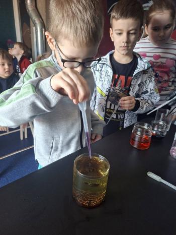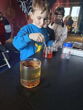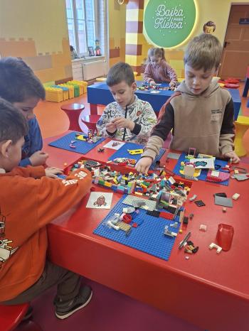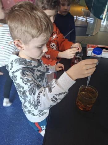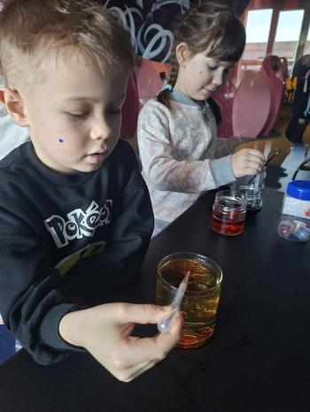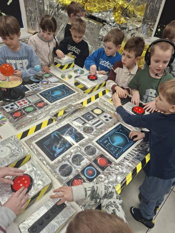 Przedszkolaki przeniosły się do świata Akademii Pana Kleksa, gdzie czekały na nie fantastyczne eksperymenty, kreatywne zadania i mnóstwo radości. Dzieci z ogromnym zainteresowaniem odkrywały tajemnice akademii, rozwijały swoją wyobraźnię i świetnie się bawiły.
