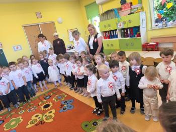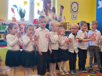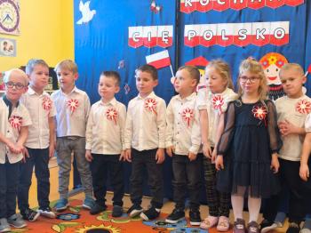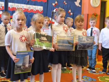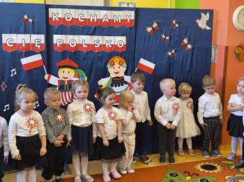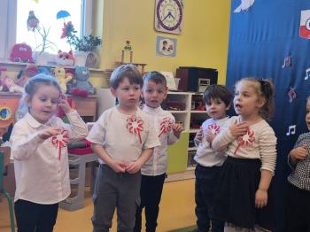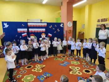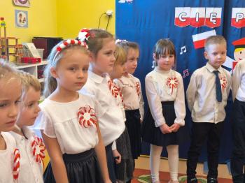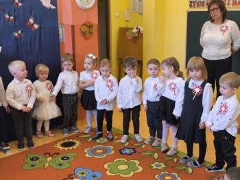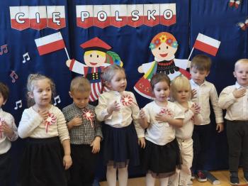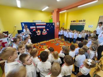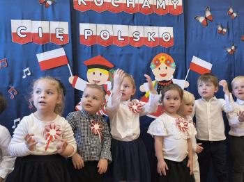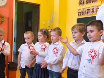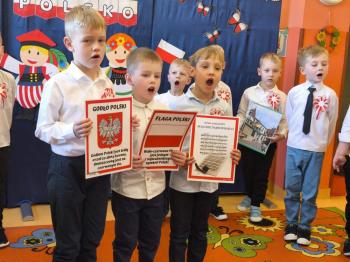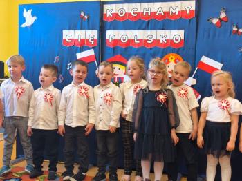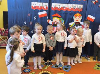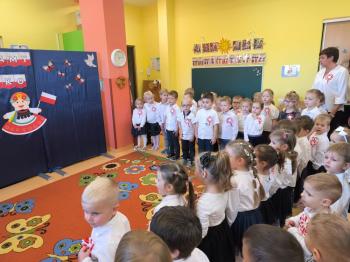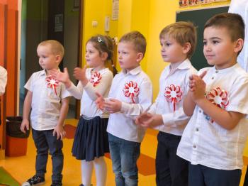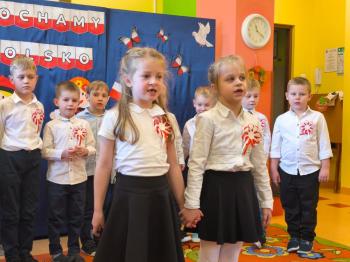 W piątek 7 listopada, jak każdego roku nasze przedszkole dołączyło do akcji „Szkoła do hymnu.” Z okazji zbliżającego się Święta Niepodległości, wszystkie dzieci zebrały się w jednej sali, aby o symbolicznej godzinie 11:11 uroczyście odśpiewać hymn narodowy. Następnie, każda grupa wykonała przygotowane krótkie programy artystyczne, które dawały wyraz pięknej patriotycznej postawy przedszkolaków i potrafiły wzruszyć do łez.
