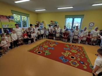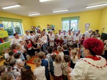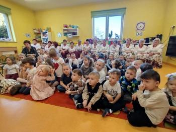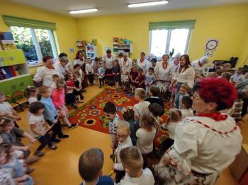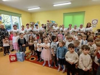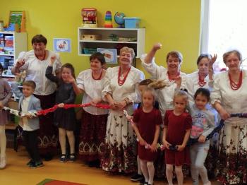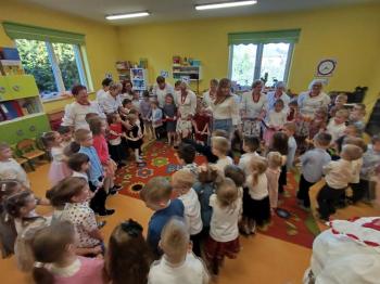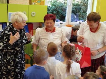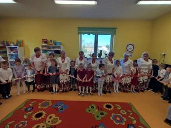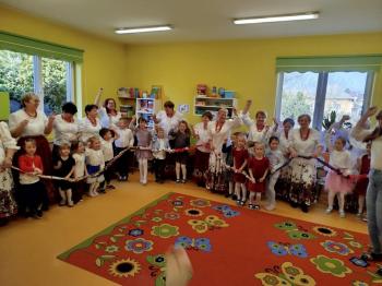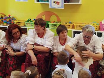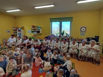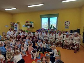 W tym roku z okazji Dnia Kobiet, gościliśmy w naszym przedszkolu panie z Koła Gospodyń Wiejskich z Włosienicy i Stawów Monowskich. Pani dyrektor Leokadia Kukla serdecznie powitała naszych gości i zaprosiła do oglądania krótkiego programu artystycznego. Przedszkolaki wyraziły szacunek i podziw dla kobiet przy okazji ich święta, a skoczne piosenki dopełniły całości występów. Była to również okazja do wspólnej zabawy i zapoznania z wyglądem barwnych strojów, w których nasze panie wyglądały bardzo dostojnie. Na zakończenie spotkania dzieci wręczyły paniom bukiety i słodkie upominki.