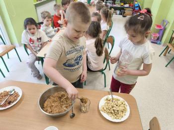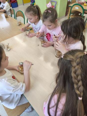 Marcowe zajęcia podczas realizacji innowacji pedagogicznej „Klub Zdrowego Łasucha” w grupie Pszczółek...