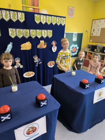 4 marca odbył się turniej wiedzy o zdrowiu, w którym wzięły udział dzieci z grupy Pszczółek i Biedronek. Przedszkolaki utrwaliły swoją wiedzę w zakresie zdrowego odżywiania i dbania o higienę. Podczas konkurencji dzieci rozwiązywały quizy i zagadki, układały puzzle, ćwiczyły zwinność i koordynacje ruchową oraz rozwijały umiejętność współpracy. W miłej atmosferze zdrowej rywalizacji wszystkie przedszkolaki świetnie poradziły sobie ze stawianymi przed nimi zadaniami, a na pamiątkę pani dyrektor wręczyła dzieciom dyplomy.