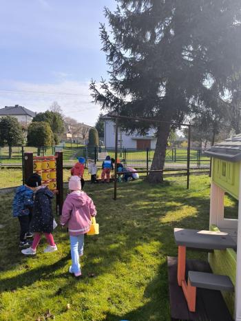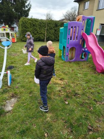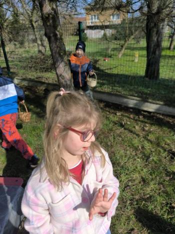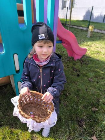 Tradycja przedszkola poprzedzająca Święta Wielkanocne podtrzymana! Nawet słoneczko zza chmurek dostrzegło przedszkolaków z koszyczkami i postanowiło towarzyszyć nam w tegorocznym zbieraniu czekoladowych jajeczek. Wszystkie grupy już od samego rana z niecierpliwością przebierały nóżkami, by udać się do przedszkolnego ogrodu w poszukiwaniu ukrytych smakołyków. Dobre humory i uśmiechy towarzyszyły dzieciom przez cały dzień, a każdy z zaangażowaniem pilnował swoich upolowanych jajeczek.