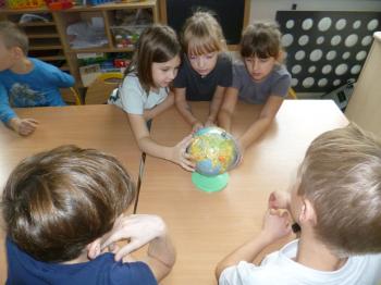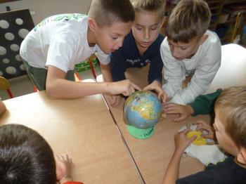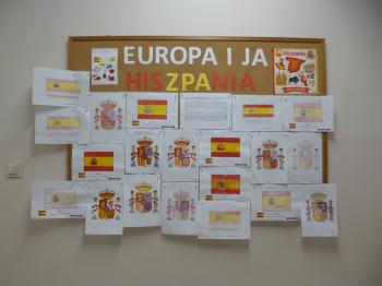 Pierwszym zadaniem z projektu „Europa i ja” było zapoznanie dzieci z symbolami narodowymi wybranego kraju. Dzieci poznały w prezentacji multimedialnej flagę, godło i hymn Hiszpanii. Uczniowie wyszukiwali położenia Hiszpanii w Europie na globusie, a także dowiedzieli się dlaczego godło tego kraju ma tyle koron. W odpowiedniej pozycji dzieci wysłuchały hymnu państwowego Hiszpanii. Ponadto uczniowie kolorowali dowolną techniką symbole narodowe Hiszpanii: flagę i godło które zostały zaprezentowane na świetlicowej gazetce.