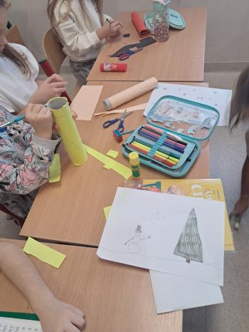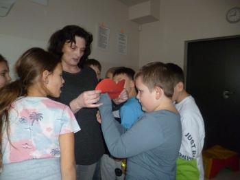 Dodatkowo dzieci wykonały pracę plastyczną „Zaczarowane buty” z wykorzystaniem rolek po ręcznikach papierowych oraz kolorowego papieru. Powstały kreatywne, barwne i pomysłowe prace, które wprowadziły wszystkich w magiczny andrzejkowy nastrój. Andrzejkowe spotkanie w świetlicy było pełne uśmiechu, radości i dobrej zabawy, pozostawiając uczniów w wyjątkowym nastroju i z nadzieją na spełnienie najpiękniejszych wróżb.