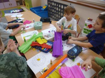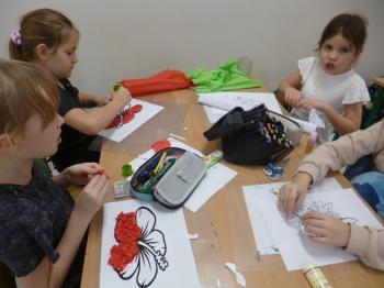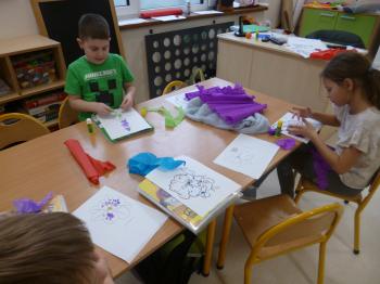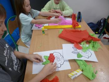Podczas części plastycznej uczniowie wykonali barwne prace, wylepiając bibułą wybrane przez siebie hiszpańskie kwiaty. Gotowe prace ozdobiły gazetkę świetlicową wprowadzając do niej śródziemnomorski klimat.