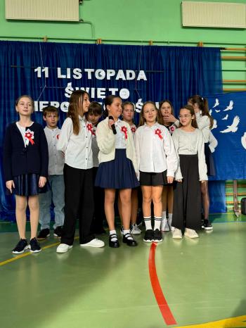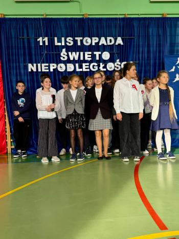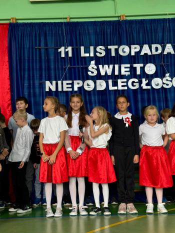 W czwartek 13 listopada odbyła się uroczysta akademia z okazji 107 rocznicy odzyskania przez Polskę niepodległości. Uczniowie klas 4,5 i 6 przygotowali program artystyczny, w którym zaprezentowali wiersze. O oprawę muzyczną zadbał szkolny chór. Następnie każda klasa odśpiewała wcześniej przygotowaną pieśń patriotyczną.