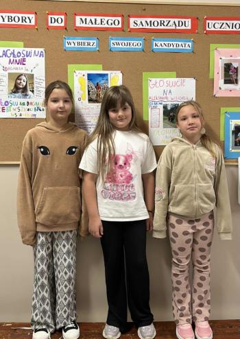 Zastępczynie: Zuzanna Chowaniec (kl. 7b) oraz Zofia Grzywa (kl. 6a) W młodszych klasach również odbyły się wybory do Samorządu.: