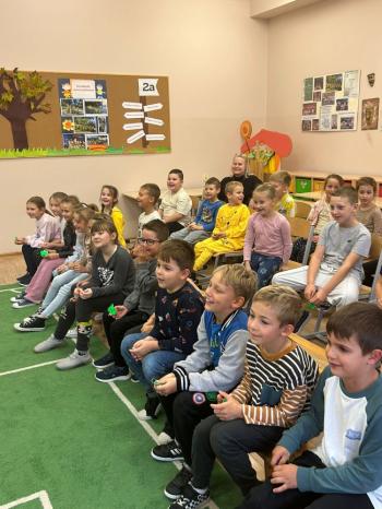 W trosce o bezpieczeństwo i zdrowe kręgosłupy aktorzy kółka teatralnego klas I-III zaprosili na przedstawienie pierwszoklasistów.
