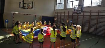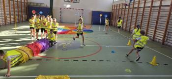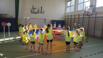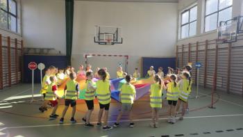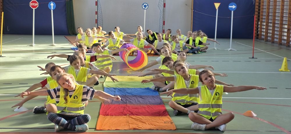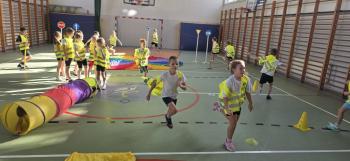 Celem zajęć było promowanie bezpieczeństwa na drodze oraz przypomnienie zasad noszenia elementów odblaskowych, szczególnie po zmroku i w okresie jesienno-zimowym. Uczniowie bardzo chętnie angażowali się w zajęcia, a ich aktywność dotyczyła nie tylko zasad ruchu, ale również kształtowania koordynacji, zwinności, a także przestrzegania zasad w grupie.