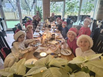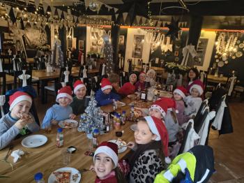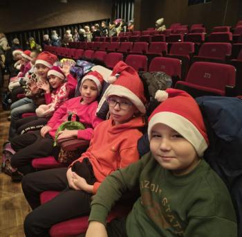 Sprawdzili co kryje się w prezentach i stanęli pod świetlną fontanną. Następnie udali się do Oświęcimskiego Centrum Kultury, gdzie uczestniczyli w programie edukacyjnym „Lekcja w kinie”. Dowiedzieli się jak powstają filmy i na czym polega praca ludzi tworzących film. Z zainteresowaniem zobaczyli film „Lilianna Pędziwiatr”. Miłą niespodzianką była pyszna pizza i serdeczne przyjęcie w zimowej aurze restauracji „Smaki Dzieciństwa”. W świetnych, mikołajkowych nastrojach wrócili do szkoły.