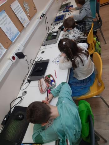 Dodatkowo, podczas zajęć informatyki, uczniowie brali udział w potyczkach w grach planszowych poświęconych bezpiecznemu korzystaniu z Internetu. Gry te zostały przygotowane przez starszych uczniów, co sprzyjało współpracy między klasami i nauce poprzez zabawę.