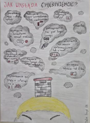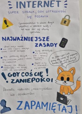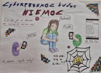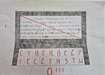 Szczególne zaangażowanie wykazali uczniowie klas ósmych, którzy na lekcjach wiedzy o społeczeństwie przygotowali ulotki poruszające problem cyberprzemocy oraz cyberbezpieczeństwa. Materiały te miały na celu uwrażliwienie młodszych kolegów i koleżanek na zagrożenia, jakie mogą pojawić się w Internecie.
