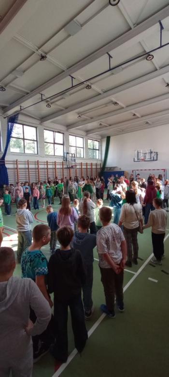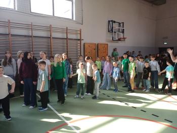 Kulminacyjnym punktem dnia było wspólne powitanie wiosny. Uczniowie wszystkich klas, razem z nauczycielami oraz Panią Dyrektor, zatańczyli taniec belgijski na sali gimnastycznej 💃🕺 Było dużo śmiechu, energii i pozytywnej atmosfery!