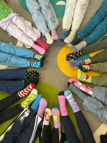 Uczniowie i nauczyciele ubrali się w odcienie zieleni, symbolizujące budzącą się do życia przyrodę 🌱 Dodatkowo założyliśmy kolorowe skarpetki nie do pary – są one symbolem solidarności z osobami z Zespołem Downa. Ten prosty gest pokazuje, że różnorodność jest czymś pięknym, a każdy z nas jest wyjątkowy i zasługuje na akceptację 🤝💛