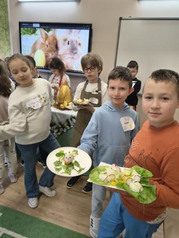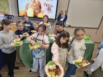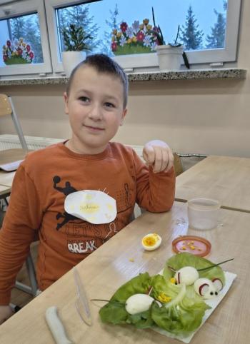 Uczniowie z wielkim zaangażowaniem przygotowywali świąteczne przekąski z jajek, które mogłyby ozdobić wielkanocny stół. Wykorzystując zdrowe produkty, mali „MasterChefowie” zachwycili kreatywnością oraz dbałością o estetykę swoich potraw.