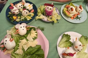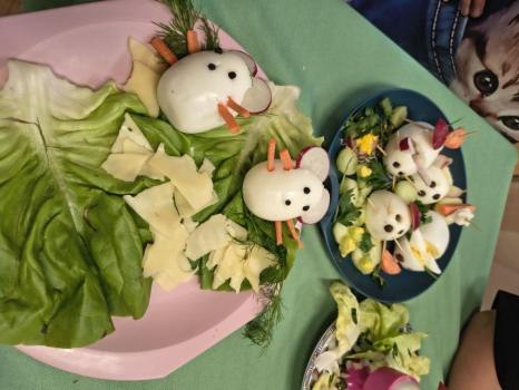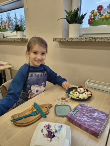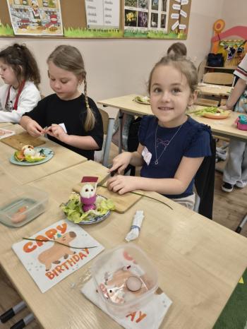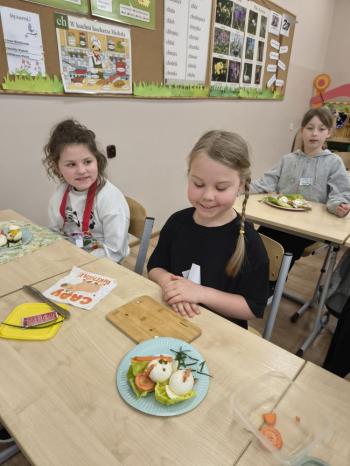 Na talerzach pojawiły się urocze kurczaczki, myszki i zajączki, które nie tylko wyglądały smakowicie, ale z pewnością również wyśmienicie smakowały. Drugoklasiści z dumą prezentowali swoje kulinarne dzieła.