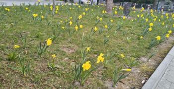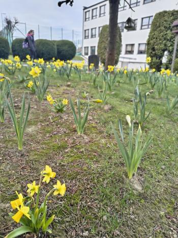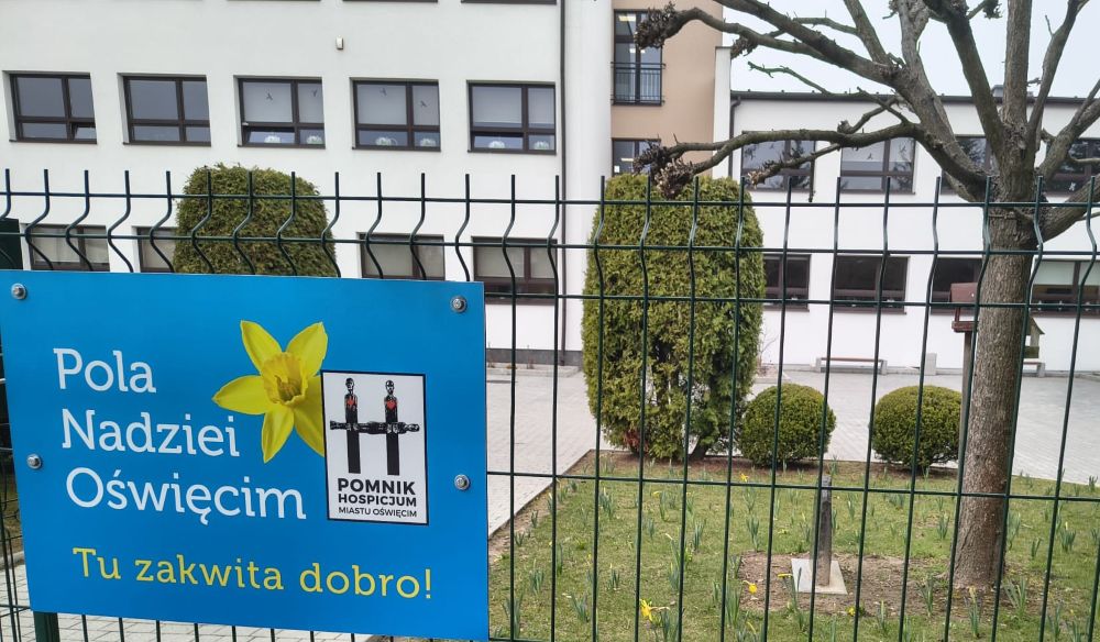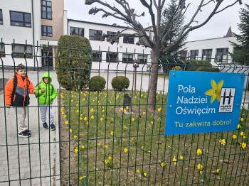 Jesienią na rabacie obok szkoły społeczność szkolna posadziła 535 cebulek żonkili. Wiosną nasze „Pole Nadziei” pięknie zakwitło, przypominając o wielkiej wartości życzliwości, obecności i bezinteresownej pomocy drugiemu człowiekowi.