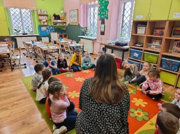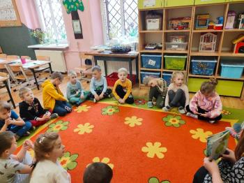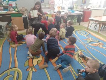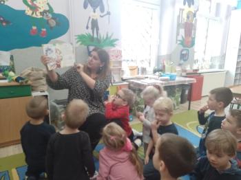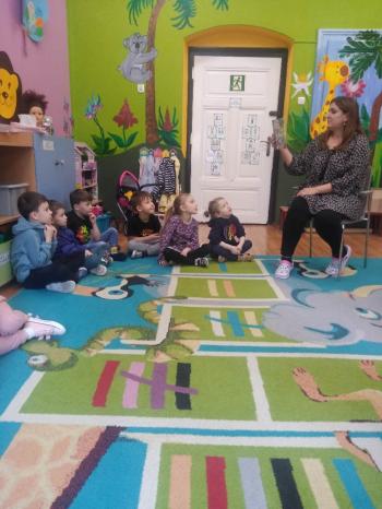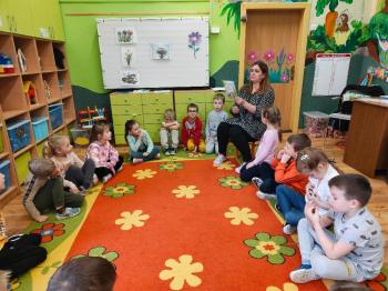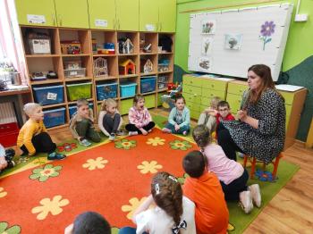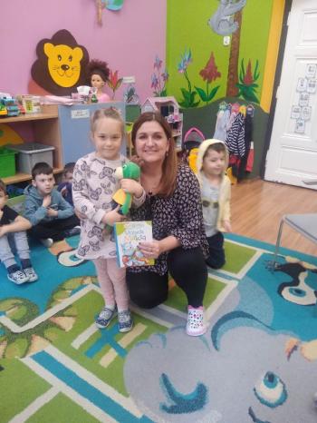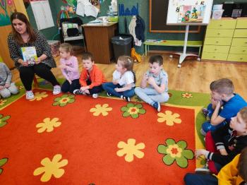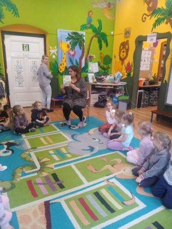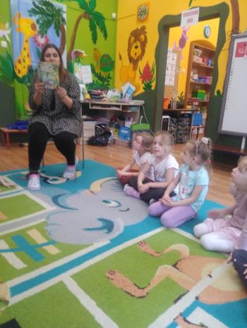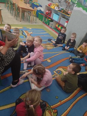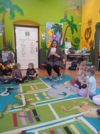 Pani Monika czytała dziś bajki przedszkolakom o bardzo ważnych wartościach, m.in. dlaczego zazdrość to złe uczucie; co to znaczy mieć dobre serduszko oraz czym jest plotka i co się przez nią dzieje w świecie.